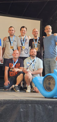 Am Samstag, den 21.06.2025, ging es für das 3er Damen und 4er Herren Team weiter. Zuerst gab es 15 Minuten Probewürfe. Später, nach 3 Spielen, stand eine Pause auf dem Programm und die Bahnen wurden neu geölt. Nach der Pause und dem Bahnwechsel zwischen den Damen und Herren Teams ging es darum, jeden Pin zu sammeln. Das Herren Team hatten ein einziges Ziel und wollten endlich die Bronzemedaille erreichen. Die Spannung stieg und tatsächlich erreichten wir endlich unser Ziel und durften die Bronzemedaille mit nach Hause nehmen. Große Emotionen ließen wir frei und lagen uns in den Armen und weinten vor Freude.