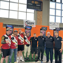 Der Spielmodus war 301 Master Out. Es nahmen 26 Vereine aus ganz Deutschland teil. In der ersten Vorrunde trafen wir auf GSV Trier 1, was eine große Herausforderung für uns war. Wir mussten uns mit einer knappen Niederlage von 4:5 geschlagen geben. Im zweiten Spiel traten wir gegen den GSV Braunschweig 1 an. Auch dort mussten wir eine knappe Niederlage mit 5:4 einstecken. Im dritten Spiel mussten wir gegen HSC Schleswig 2 antreten und haben mit einer Bestleistung 3:6 gewonnen. Erfolgreich umgesetzt. Langsam wurden wir warmgespielt und konnten unseren Fokus besser setzen. Das letzte Spiel bestritten wir gegen BSF Bietigheim. Uns war bewusst, dass Bietigheim eine Top-Mannschaft ist. Mit viel Schweiß und präzisen Würfen hat es nicht ausgereicht und wir haben 1:8 verloren.