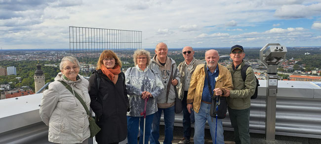 Auf der Panorama -Tower 142m hoch bei klaren Wetter konnten wir bis Petersberg weit sehen, auch Gehörlosenschule Leipzig. Am und in der Nikolaikirche sind wir über die friedliche Revolution in der DDR bis 9.10.1989 informiert.
