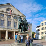 Unser erster Stopp war das Stadttheater Weimar, auf dessen Platz das bekannte Denkmal von Friedrich Schiller (1759–1805) und Johann Wolfgang von Goethe (1749–1832) steht.